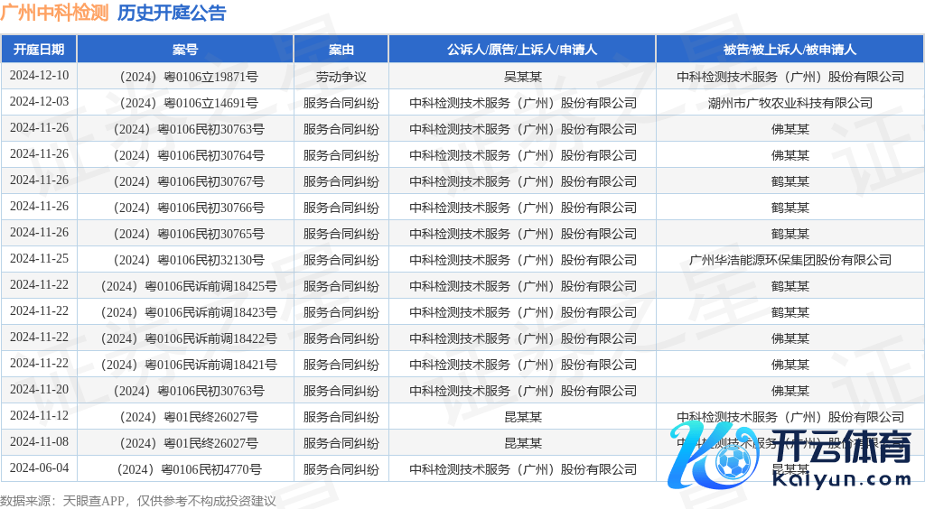 本站音书九游体育登录入口jiuyou官网,凭据天眼查APP流露,近日公布了一则中科检测时期服务(广州)股份有限公司算作原告/上诉东谈主的开庭公告,详备实际如下: