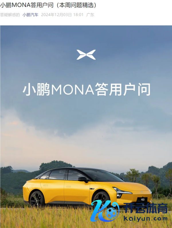 【CNMO科技音书】12月3日晚,小鹏汽车发布了小鹏MONA答用户问,解答了一些本周用户所提的热点问题。