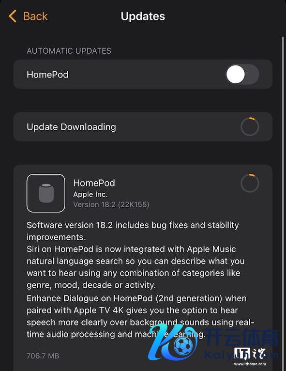 IT之家 12 月 12 日音书九游体育娱乐网,公司今天(12 月 12 日)发布 iOS 18.2、iPadOS 18.2、macOS 15.2 Sequoia 等系统除外,还发布了 tvOS 18.2 和 HomePod 18.2 更新。