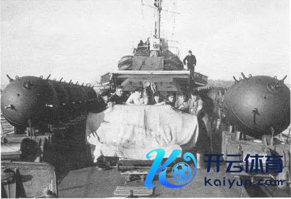 图3. 排放在德国散伙舰Z8号船面上的水雷。颇为壮不雅