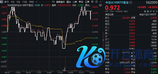 中证A100ETF基金(562000)被迫追踪中证A100指数,午后探底回升,场内收涨0.52%,跑赢沪指(+0.23%)、创指(-0.52%)及沪深300(0.21%)等主要指数。场内交投尤为活跃,全天成交4655万元,较昨日激增逾160%。