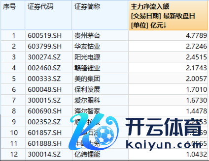 资金面上,本日12只A100龙头股获主力资金亿元级加仓,奢华股占据半壁山河!贵州茅台主力净流入4.78亿元居首,且在一皆A股中名治安三。华友钴业、阳光电源、赣锋锂业、好意思的集团等4股主力净流入额超2亿元。