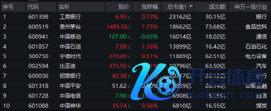 图:中证A100指数2月27日总市值TOP10成份股