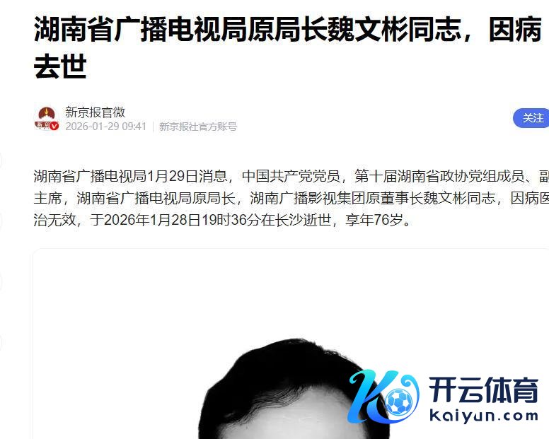 2026年1月28日19时36分,一个让湖南广电东谈主悲痛的音讯传来:湖南省播送电视局原局长、湖南播送影视集团原董事长魏文彬,因病死字,享年76岁。